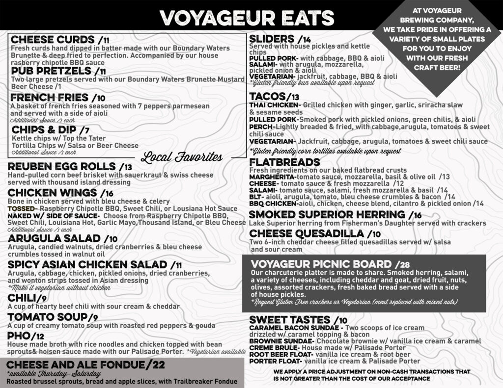 Enjoy food, beer and a great view of Lake Superior when visiting our tap room in Grand Marais, Minnesota. Taproom MenuVoyageur Summer Tastes 2014-07-24